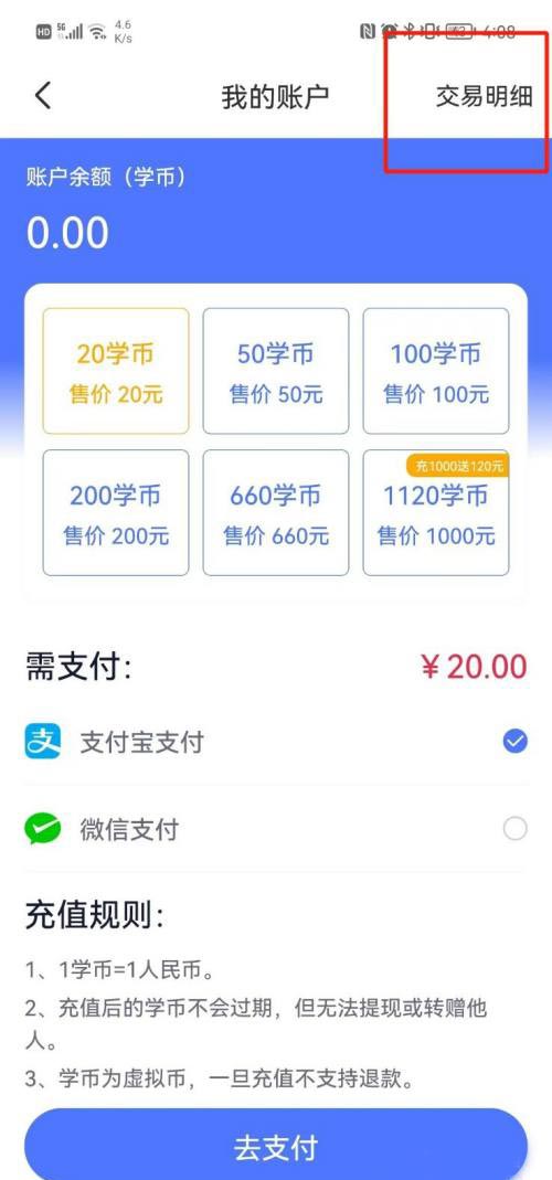 第三步:点击【交易明细】,详见下图所示;