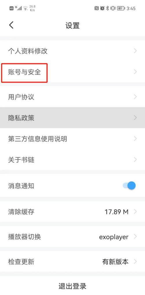 第三步:点击【账号与安全】,详见下图所示;