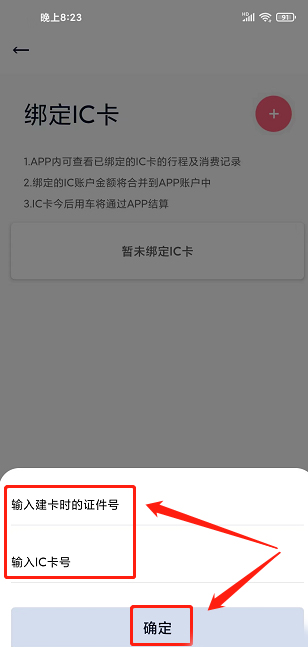 进入绑定IC卡界面,点击【暂未绑定IC卡】。