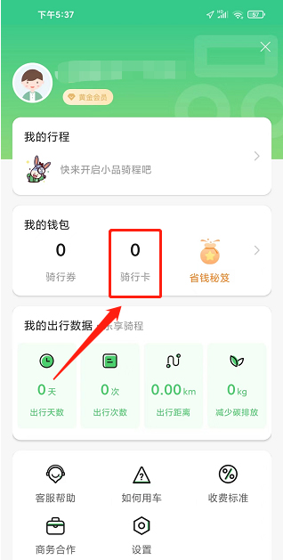 进入我的界面,点击【骑行卡】。