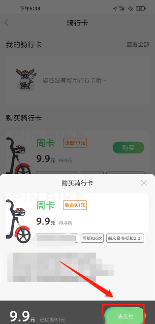 进入购买骑行卡界面,点击【去支付】。