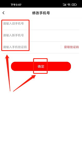 进入修改手机号界面,输入旧手机号、新手机号、手机号验证码,点击【确定】。
