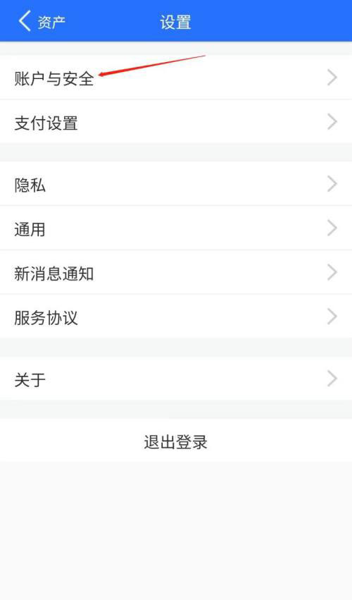 1、打开蚂蚁财富,在设置页面点击账户与安全;