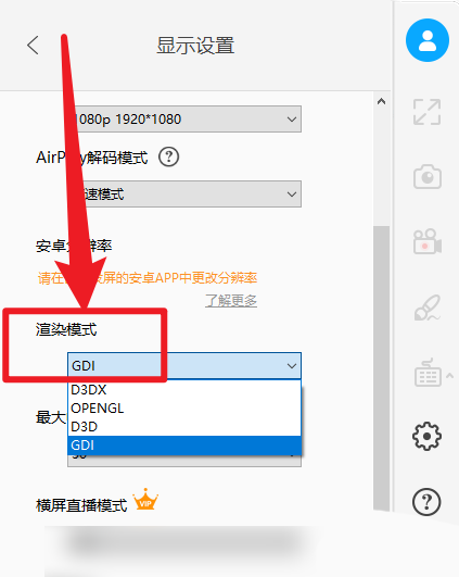 傲软投屏怎么设置渲染模式呢?在软件中有多种渲染模式如GDI、D3DX、OPENGL、D3D等,下面咱们就来看看设置渲染模式的操作吧。