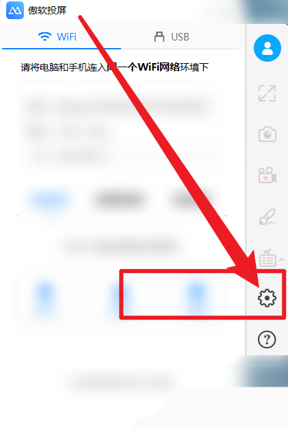 1、打开傲软投屏软件,在首页右侧点击进入设置。