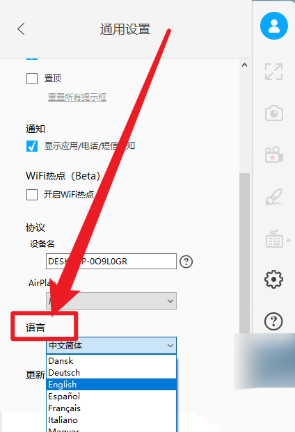傲软投屏怎么设置语言?傲软投屏设置语言教程