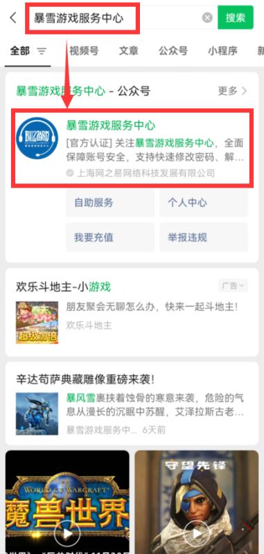 1、微信搜索与关注“暴雪游戏服务中心”公众号。