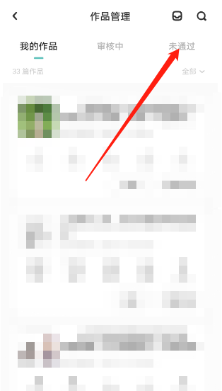 3、点击上方的【未通过】,你就能查看到作品和未通过理由了。