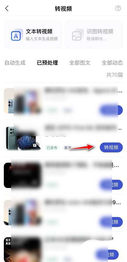 进入百家号转视频界面,找到内容,点击进入转视频。