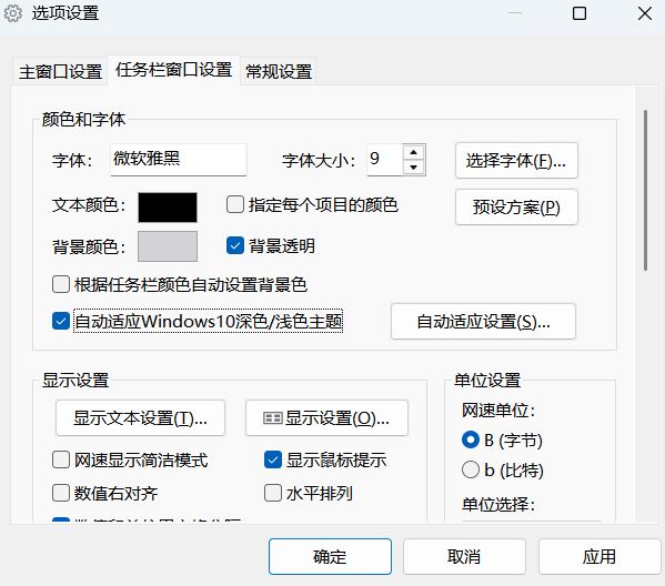 此外在【选项设置】里,还可以对主窗口和任务栏窗口进行设置,比如字体、颜色等等。