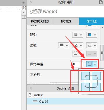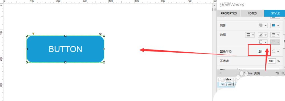 选中元件,然后调出右侧的样式属性区,在这里有个圆角半径的设置栏,