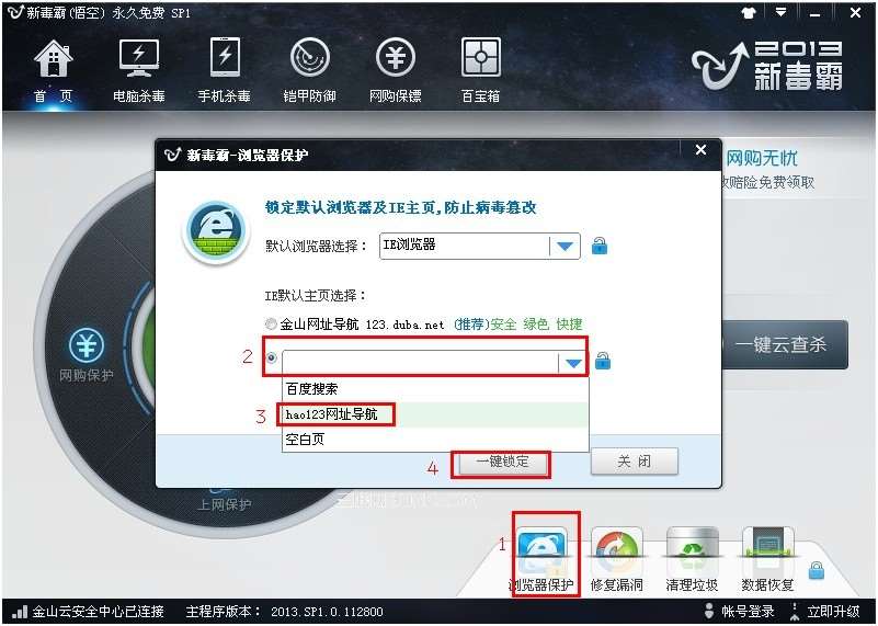 金山毒霸怎么锁定主页?金山毒霸锁定主页的方法