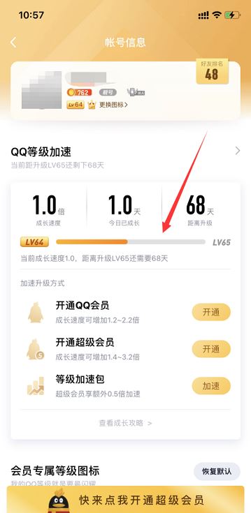 第六步:点击【查看成长攻略】便可看到还需多久升级到下一级。