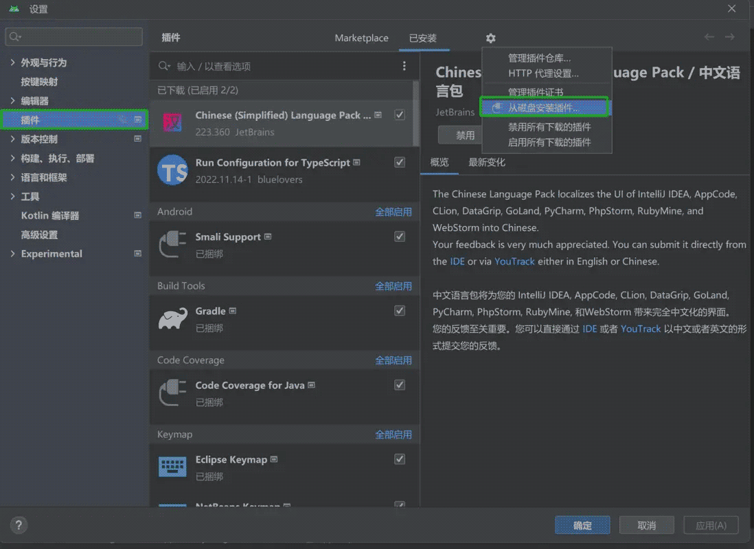 安装 android-studio的版本要和 语言包的版本保持一致,否则无法进行汉化