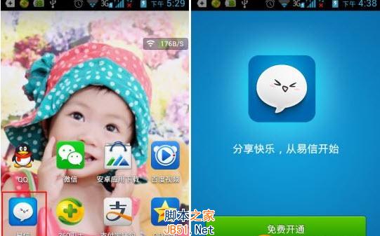 1、下载好易信后,打开易信软件,然后按提示免费开通易信。