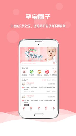 此外,孕宝app还提供了类似朋友圈一样的社交属性,在“圈子”里,宝妈们可以一起交流心得,分享孕期、育儿趣事,吐槽不满,发表疑问,或者聊一聊八卦。总而言之,有关孕期、育儿的全部疑问都可以在这里进行交流互动,包括宝妈们的身体健康状态、宝宝的身体健康状态等等,配合使用孕宝自主开发的智能硬件设备,可以远程胎心监护仪支持随时随地做胎心监护,血糖仪支持数据实时上传并进行营养分析,如有异常及时发现,时刻保障孕妇和宝宝的健康。