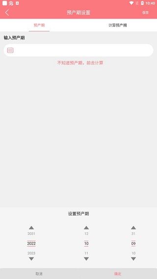 如果用户并不清楚自己的预产期时间,那么可以点击侧面的“计算预产期”,在这里选择时间就可以计算出你大概的预产期是多少了。