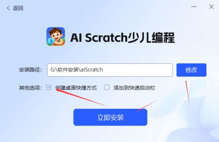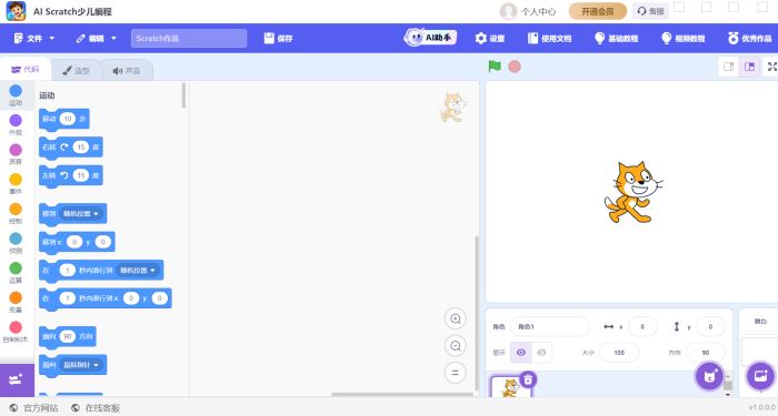 AI Scratch少儿编程 V1.0.0 官方安装版AI Scratch少儿编程电脑端使用的编程启蒙学习软件,适合6-12岁儿童编程启蒙使用,软件采用像搭积木一样的可视化操作,让孩子在指尖拖拽中理解编程逻辑等...