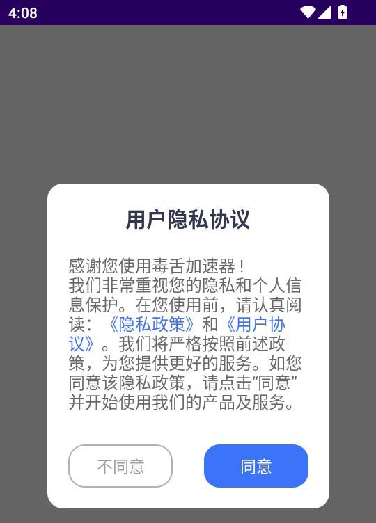 1.首先打开软件阅读“用户隐私协议”后,点击“同意”按钮进入APP