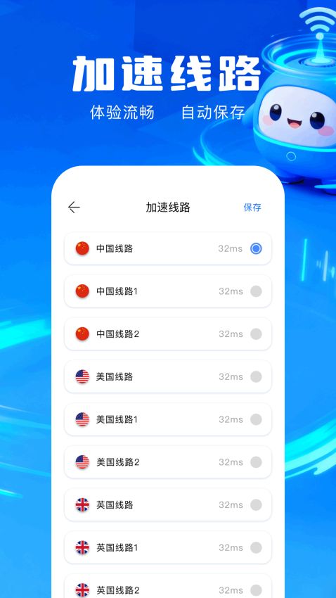 一键即可为用户智能路由优质线路,无需用户繁琐的线路选择操作,保障用户的访问体验。
