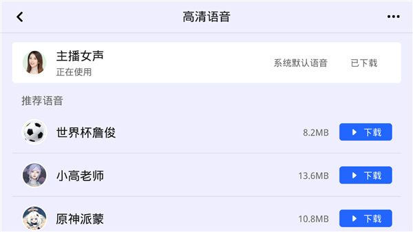 4、里面为用户提供了海量的高清语音,用户可以选择自己喜欢的语音类型点击下载;