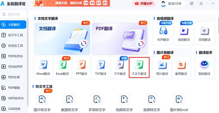 全能翻译功能:文字翻译、图片翻译、视频翻译、音频翻译、PDF翻译、Word翻译、Excel翻译、PPT翻译、TXT翻译