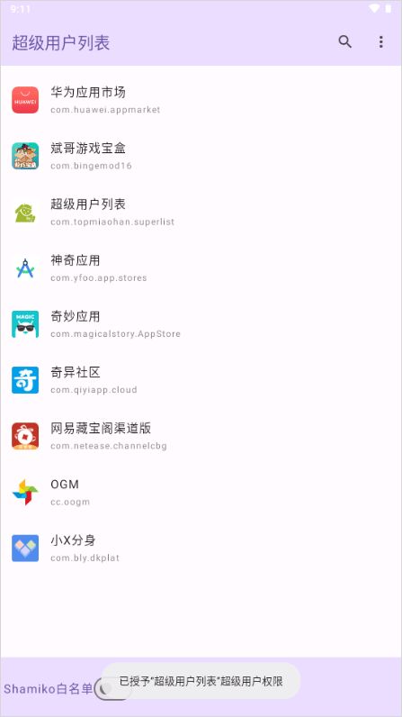 超级用户列表需与Shizuku辅助工具协同作业,以实现root权限的管理。