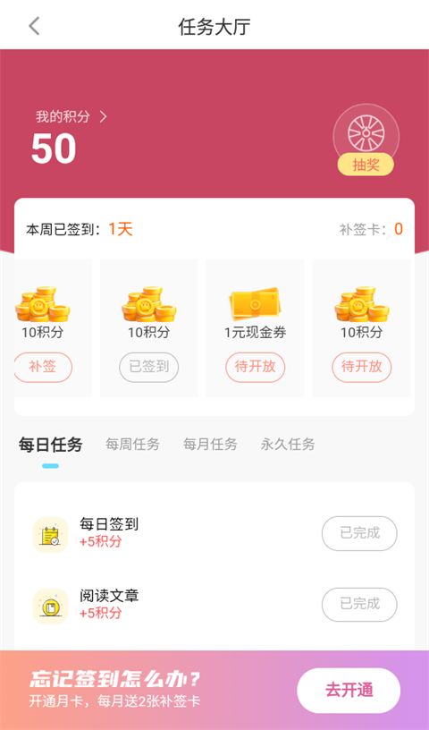 2、在【赚积分】界面玩家可通过完成任务获取积分;