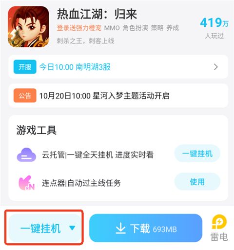 1、在雷电圈搜索想要挂机或自动清日常的游戏。