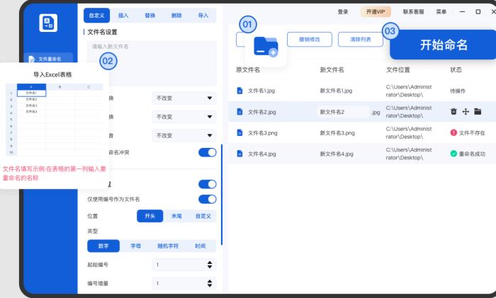 导入填有文件名的Excel表格,即可自动将文件批量重命名为指定文本