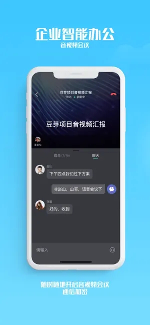 2、音视频及会议:高效的发起多人语音会议、视频会议;大方数视频直播、多端同步随时随地观看直播