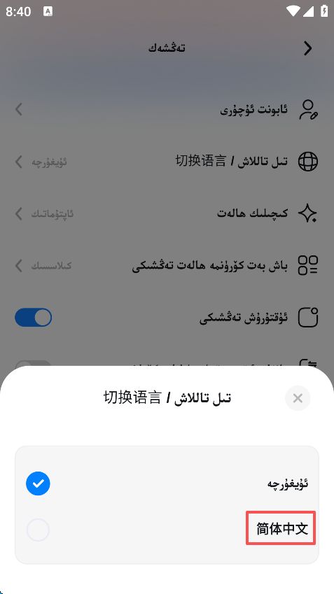 3、选择语言即可(维吾尔文字和中文都可以选择)。