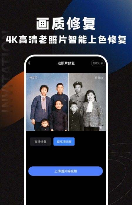 画质修复:模糊视频→4K高清,老照片智能上色修复