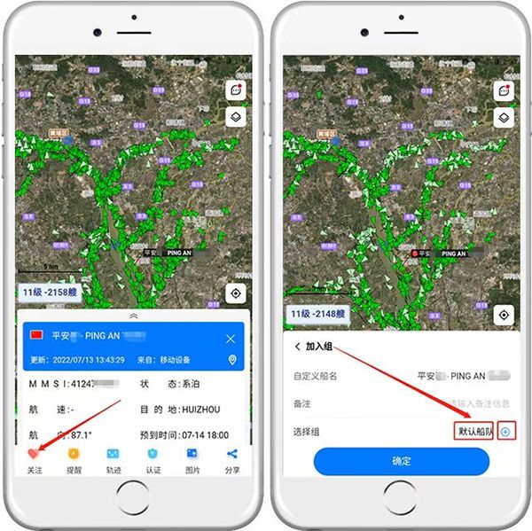 一、选择想要关注的船舶,把它加入组