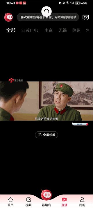4、直播界面可以让你在手机中观看江苏电视总台,以及江苏其它地市电视直播节目