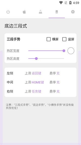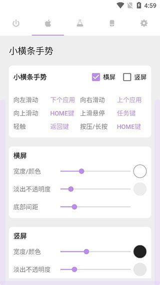 3、软件提供了多种手势操作,这里可以设置苹果手机最底下的小横条;