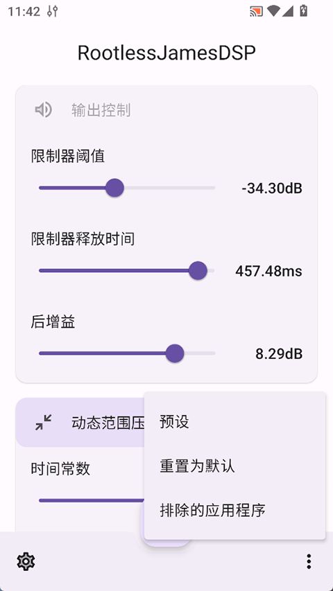 除了均衡器和卷积混响,RootlessJamesDSP 还集成了多种实用的音频效果,包括 动态范围压缩、混响、立体声增强 和 低音增强 等,让用户可以全面地优化听觉体验。