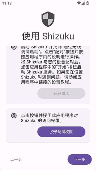 2、没有shizukui的可以下载到手机上,然后开启它,接着就可以点击【授予访问权限】