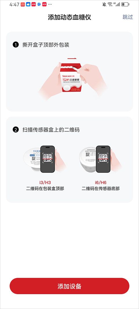 2、然后按照界面提示将血糖仪设备与app进行连接