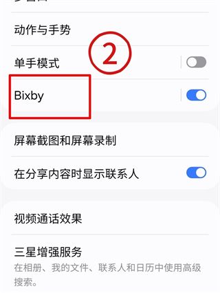 在「高级功能」页面找到并启用「Bixby」选项,接着你可以设置唤醒方式,准备好体验语音助手的便捷操作。