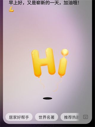 当唤醒时,它会给出友好的问候,如早安提醒,并提供如「居家好帮手」、「世界名著」等便捷功能入口,让你随时掌握周围的最新资讯或功能。