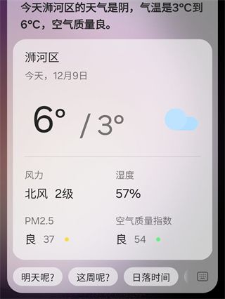 你可以轻松查询天气,只需一句话,会立即为你提供准确的天气预报,帮助你更好地规划一天的活动。