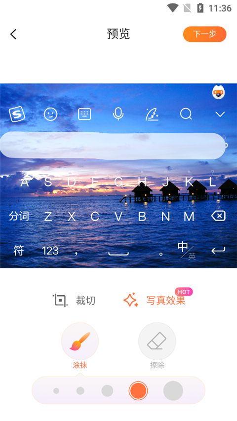 5、涂抹掉你不想要显示的文字,这样在没有输入的时候,你的键盘显示的是写真效果;