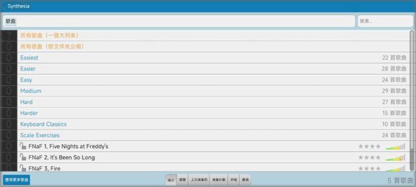Synthesia手机版是一款非常不错的虚拟钢琴软件,用户可以虚拟键盘进行弹奏钢琴,对于初学钢琴弹奏的用户来说真的是神器,它不但可与大家的电钢琴相连接,同时软件还拥有内置节拍器,上面还为用户准备了超多实用的小功能,可以给不懂五线谱的人知道怎么弹钢琴,支持任何MID文件的导入和弹奏。如果你有MIDI键盘或者MIDI输出口的电子琴,就能与之连接进行弹奏练习,练习效果非常好。目前软件自带了上百首MID曲子,它将之变成你学习钢琴的利器。有需要的朋友快来下载使用吧。