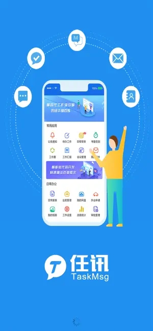 任讯(TaskMSG) 是一款用于企事业单位内部进行工作沟通的交流工具,内置消息中心、即时通讯、通讯录等常用功能,也可以与其他业务系统对接,实现各种工作消息的统一提醒和查看,在工作台内还可以随时添加各种扩展应用,作为移动办公的统一入口。