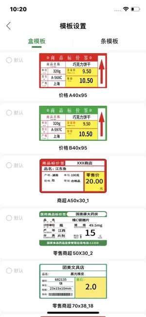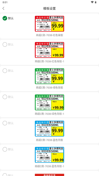 其中还提供有模板设置功能,让用户可以对价格标签的模板样式进行设置。