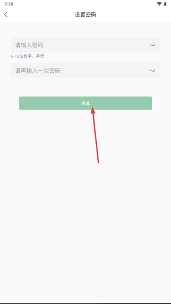 3、设置想要使用的密码后点击【完成】