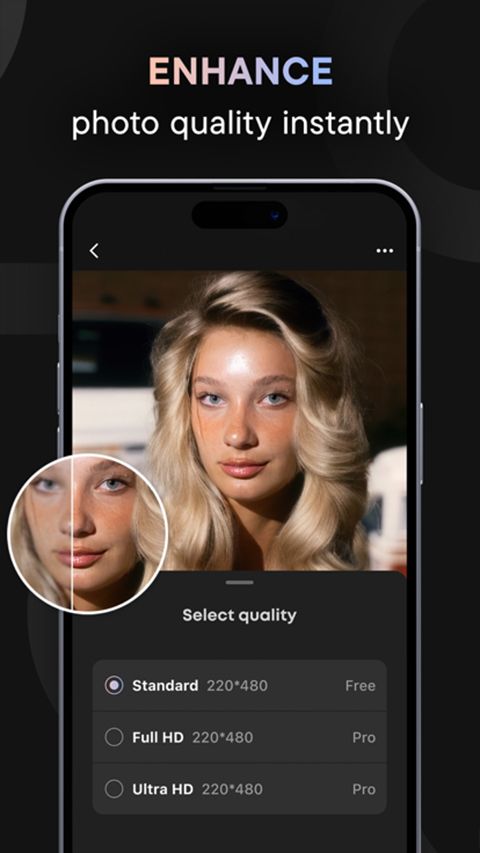 1、通过我们友好的界面,每次都能轻松获得清晰的照片质量:只需轻按一下即可将任何风格应用于您的照片,以获得万无一失的精致结果!