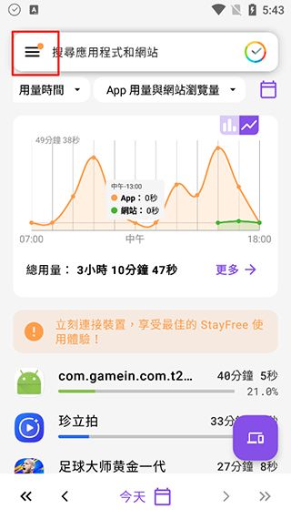 stayfree官方手机版是一款屏幕管理与追踪软件,通过它用户可以知晓不同app的使用时长,能够有效提升我们的效率,减少干扰的时间,让用户能够更高效的完成各种任务,详细的数据统计给人一目了然的体验。