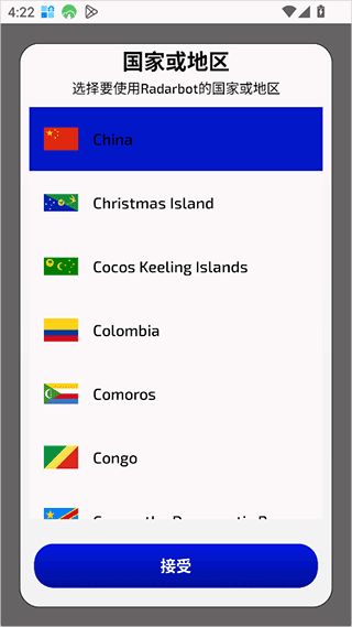 首次启动: 应用程序会要求您选择国家,授予定位服务权限(GPS)和通知权限。这些是其核心功能(实时定位和警报)所必需的,请务必允许。